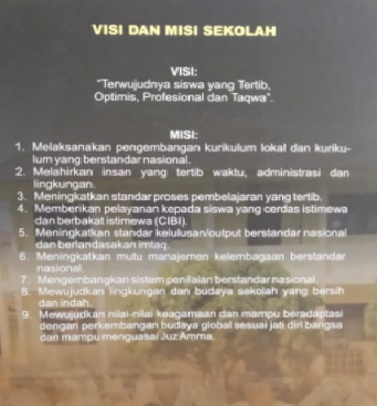 Visi : Terwujudnya siswa yang Tertib, Optimis, Profesional dan taqwa